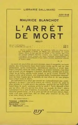 Death Sentence (French: L'Arrêt de mort) is a philosophical novel by Maurice Blanchot. First published in 1948, it is his second complete work of fiction.
