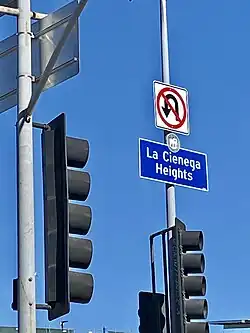 La Cienega Heights is bounded by Cadillac Avenue on the south, La Cienega Boulevard on the east, Sawyer Street on the north and Robertson Boulevard on the west. The area was previously known as Cadillac–Corning.[1] The new name has been used since 2003.[2] A legal filing by the La Cienega Heights Association claimed that the neighborhood's "core area" was bounded by "Smiley Drive to the north, Jefferson Boulevard to the south, Carmona Avenue to the east, and La Cienega/Fairfax to the west. The community consists primarily of single-family dwellings and the ethnic makeup is primarily African American and Latino."[3] The neighborhood originally had a substantial Jewish population.[2]