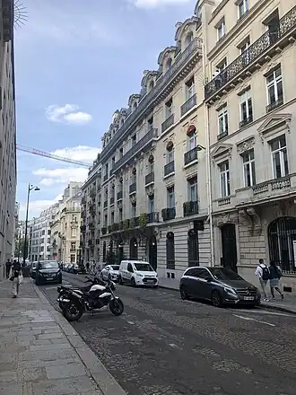 In 2012 the building was sold to a institutional investor who then sold it to Ascott in 2017.[1] The building would see a total internal renovation from 2017 to 2019 which was designed by architect Jean-Philippe Nuel who prided his design on returning to its Hennessy opulence, preserving and restoring many of the molded ceilings, fixtures, and details.[8][2] Additionally, the former carriage entrance, and later car entrance and parking, would be renovated into the hotel's lobby and a courtyard.[9] The hotel opened in 2019 as the third and final entry of "La Clef" sister hotels, which includes La Clef Louvre Paris and La Clef Tour Effiel Paris, all part of Ascott's luxury Crest collection.[9]