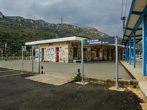 La Plana – Picamoixons is a railway station owned by adif located in the town of Picamoixons in the municipality of Valls, in the comarca of Alt Camp. The station is on the Tarragona-Reus-Lleida line, and it is served by trains of the R13 and R14 lines of the Rodalies de Catalunya, operated by Renfe Operadora.