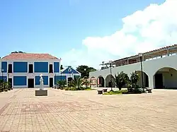 Antigua Aduana (painted blue) and the Plaza La Antillana