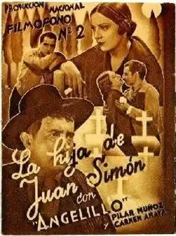 The first film, directed by José Luis Sáenz de Heredia, was released in 1935 and starred Angelillo, Pilar Muñoz and Manuel Arbó. Luis Buñuel was the executive producer for Filmófono, and had a small role as an actor.[1] One reviewer from Cine Español opined of the 1935 film, "It is essential to highlight the direction of La hija de Juan Simón as a decisive point in the creation of Spanish cinematic technique".[2] The film was a major commercial success.[3][4] The second film was released in 1957, directed by Gonzalo Delgras, with Antonio Molina in the title role.