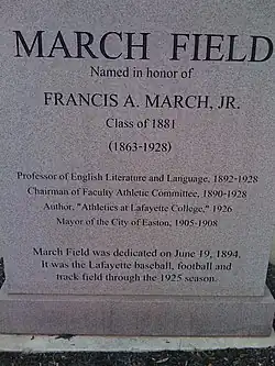 - ^ March, Francis A. (1926). Athletics at Lafayette College. Easton, PA: Lafayette College. p. 150.