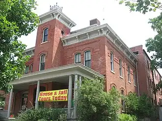 Lake County Sheriff's House and Jail, also known as the Sheriff's House, is a historic jail and residence located at 226 South Main Street in Crown Point, Lake County, Indiana, United States. It was built in 1882, and is a two-story, Second Empire style brick building. It has a three-story projecting tower and a mansard roof. It features a one-story, flat roofed porch with Tuscan order columns added about 1890. The building remained in use as a residence until 1958 and as a jail until 1974.[2]: 2 The building is maintained and open to the public by the Old Sheriff's House Foundation.