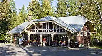 The Lake McDonald Lodge Coffee Shop was originally excluded from the list of contributing structures as a modern intrusion.[2] It has since been listed on its own on the National Register of Historic Places as an outstanding example of Mission 66-era design.[3] Several other structures, including a motel unit, gas station and dormitories continue to be regarded as non-contributing to the historic district.[2]