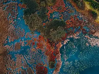 The lake is a habitat for 153 bird species, of which 64 are resident, 36 live in winter and 47 in summer, and six stop by as migrating birds.[3] A wide variety of butterflies can be observed during early May. Freshwater fish as food is also popular at the site.[1]