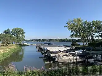 ![]() Sherwood Lake at boat dock in central Mission Township, facing south (2025) | |