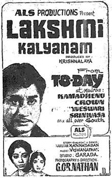 10. ^ "Lakshmi Kalyanam". The Indian Express. 15 November 1968. p. 5. Retrieved 19 January 2021 – via Google News Archive.
