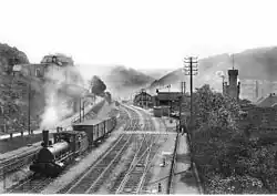 On 24 December 1881, Palatine Ludwig Railway Company (Pfälzische Ludwigsbahn-Gesellschaft) established a yard for loading timber near the station in order to improve operations.[50] This later developed into Lambrecht freight yard, since Lambrecht station had reached the limits of its capacities and, for reasons of topography, an extension of the track layout was impossible.[51] Frankeneck freight yard was also built at the other end of the track that developed into the Little Cuckoo Railway.[52] In order to get to the freight yard, the trains had to reverse in Frankeneck station, with the locomotive running around the train. The freight yard itself had four main tracks.[53]