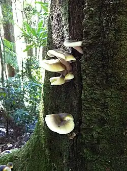 Below 880 metres (2,890 ft) the white booyong and black booyong are commonly found.[4] In higher elevations the yellow carabeen, red carabeen, pigeonberry ash, rosewood and soft corkwood trees predominate.[4]