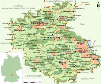 Fürth is a Landkreis (district) in Bavaria, Germany. It is bounded by (from the east and clockwise) the cities of Fürth and Nuremberg, and by the districts of Roth, Ansbach, Neustadt (Aisch)-Bad Windsheim and Erlangen-Höchstadt.