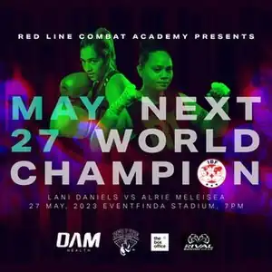 Lani Daniels vs Alrie Meleisea, billed as Next World Champion was a boxing fight between Lani Daniels and Alrie Meleisea. It took place on 27 May 2023 at Eventfinda Stadium in Auckland, New Zealand. This fight made history for being the first World title between two New Zealand-born boxers and the first World title between Maori and Pasifika people.[1] Lani Daniels is well known for her first world title opportunity when she fought against Geovana Peres in their rematch dubbed History In The Making. Daniels three New Zealand title including the NZPBA Light Heavyweight title, Pro Box New Zealand Light Heavyweight title and Pro Box New Zealand Super Middleweight title.[2] She represents her Iwi the Ngāti Hine.[3] She is the second New Zealand Born female to be fighting for a major World title. The first being Daniella Smith, who is from the same hometown as Lani Daniels.[4] Alrie Meleisea is a New Zealand born Samoan who has won three titles in her career including the NZPBA Heavyweight title, UBF Asia Pacific title and Pro Box New Zealand title.[5][6]