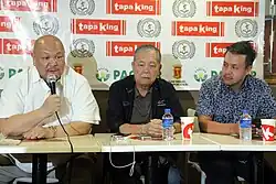 LVPI officials attending the Philippine Sportswriters Association (PSA) Forum on August 7, 2018. From left to right: President Peter Cayco, Vice President Joey Romasanta, and Board Member and PSL Vice President Ian Laurel.