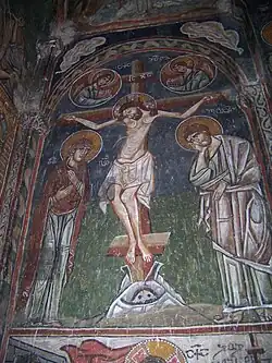 The Crucifixion, a fresco on the northern internal wall.