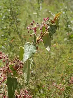 Lasiopetalum bracteatum, commonly known as Helena velvet bush,[2] is a species of flowering plant in the family Malvaceae and is endemic to the south-west Western Australia. It is an erect, spreading shrub with egg-shaped leaves and loose groups pinkish flowers.