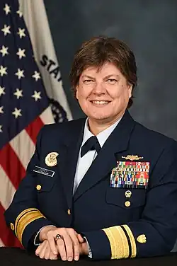 Laura M. Dickey is a retired United States Coast Guard Rear Admiral who last served as the deputy for operations policy and capabilities of the United States Coast Guard from 2024 to 2025. She previously served as deputy for materiel readiness from 2023 to 2024, and as deputy commander of the Coast Guard Atlantic Area from 2022 to 2023.[1] She commanded the Fifth Coast Guard District from 2020 to 2022.[2][3]