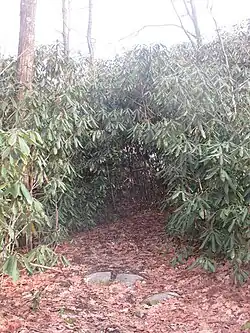 Just before 15 miles the trail enters Laurel Ridge State Park for the first time, where it continues northeast. Just past 17 miles the trail encounters the access trail to the second overnight shelter.[5][6] The trail passes the Laurel Ridge State Park office and then crosses PA Route 653 at about 19 miles, then leaves the park and enters Forbes State Forest at about 24 miles.[5] Shortly after this the trail passes the access trail to the third overnight shelter. At about 26 miles the trail crosses some private property then traverses the borough of Seven Springs and runs just west of Seven Springs Mountain Resort.[8]