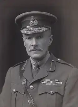 He served in the First World War of 1914–1918, initially as commander of the 19th Infantry Brigade,[17] when he was again mentioned in despatches but held no divisional commands. He was placed in command of a reserve centre in June 1915[18] and retired from the service in 1920.[2]