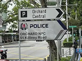 A sign to the Orchard neighbourhood police centre (NPC), indicating its location.