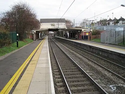Lea Hall railway station is situated in the Lea Hall area east of the city of Birmingham, in the West Midlands of England. It has two platforms, one each side of the two running lines, with no points or sidings. The ticket office is on a bridge over the tracks, which are a little below street level. The station, and all trains serving it, are operated by West Midlands Trains. Ramps have been added to permit easy disabled access to both platforms.