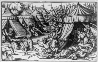 The League's forces had victories against the Ottomans at Torvioll (1444),[24] Mokra (1445),[25] Otonetë (1446),[26] Oranik (1448),[26] a loss at Svetigrad (1448) victory in Polog (1453),[26] victory at Krujë (1450), Albulena (1457), Ohrid (1464), Mokra (1462) and many others.