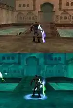 The player controls Raziel, a disfigured and ghostly vampire. The game is normally shown from a third-person perspective behind Raziel, but players can rotate the viewpoint around him. Gameplay relies largely on shifting between the material and spectral planes of existence to progress through areas. Although interaction with objects is limited in the spectral realm, this can be advantageous, because Raziel can phase through otherwise impassable gates there, and water is insubstantial, allowing him to walk on lakebeds; however, blocks, doors, and switches can be manipulated only in the physical realm.[11] Many puzzles are based on the differences between the two realms; for example, platforms and environment features in one realm may change form to open new paths in the other. Block puzzles are also common and require the rotation, flipping, and moving of large blocks to progress, often with a time limit and while avoiding enemies.[11]