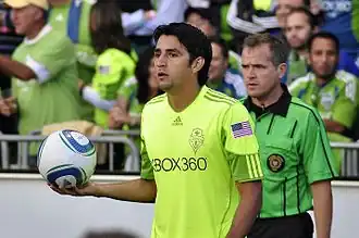 González made his professional debut for Herediano on September 24, 2000, against Puntarenas and scored his first league goal on August 4, 2002, against Carmelita.[2] González was an important player for Herediano, appearing in 154 league matches and scoring 3 goals in nine years at the club. He stayed with the team until his transfer to Municipal Liberia, also known as Liberia Mia in early 2009.[3] On July 2, 2009, it was announced that he was signed to Seattle Sounders FC of Major League Soccer.[4][5][6]