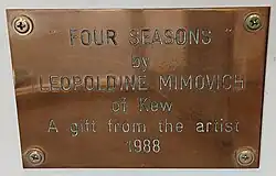 'The 4 Seasons' sculpture by Leopoldine Mimovich and the accompanying plate describing the donation to the Kew Library