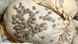 | Lepetodrilus sp. from East Scotia Ridge on carapace of large individual of Kiwa sp. | |