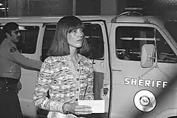 Van Houten was arrested and charged in relation to the 1969 murders of Leno and Rosemary LaBianca. Van Houten was convicted and sentenced to death, but a 1972 California Supreme Court ruling found the death penalty unconstitutional, resulting in her sentence being commuted to life in prison. Her conviction was overturned in a 1976 appellate court decision that granted her a retrial. Her second trial ended with a deadlocked jury and a mistrial. At her third trial in 1978, she was convicted of two counts of murder and one count of conspiracy and sentenced to seven years to life in prison.[2] After spending 53 years in prison that included two dozen parole hearings and parole rejections by two California governors, Van Houten was paroled in 2023.[4]