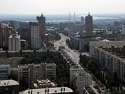 The boulevard appeared in the late 1950s in connection with the start of construction on previously undeveloped areas between Hospitalna and Novohospitalna Streets. The final section was laid on the site of the old Zasarayna Street (вулиць Засара́йної; between Novospitalna Street and the modern Lesia Ukrainka Square), Shchorsa (Щорса; from the current Lesya Ukrainka Square to John McCain Street) and Pecherskoi (Пече́рської; in 1958), Pecherskyi Boulevard (Печерський бульвар).[1] The current name Lesya Ukrainka Boulevard was given to it in 1961.[2]