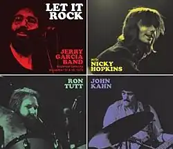 From 1975 to 1995, the Jerry Garcia Band was the main musical side project of Jerry Garcia of the Grateful Dead. The band underwent many personnel changes over the years. Let It Rock features the original lineup of the Jerry Garcia Band, which lasted from August through December 1975 — Garcia on guitar and vocals, Nicky Hopkins on piano, John Kahn on bass, and Ron Tutt on drums.[4][5][6] Kahn and Tutt had also been members of Garcia's previous band, Legion of Mary. Hopkins was a highly regarded session musician who had played with the Beatles, the Rolling Stones, the Who, the Kinks, Jefferson Airplane, and Quicksilver Messenger Service.[7]