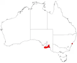 This leucopogon grows in forest, mallee scrub and heath, sometimes near the edge of swamps and in endemic to the southern Mount Lofty Ranges and Kangaroo Island in South Australia.[2]