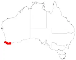 This leucopogon grows in woodland and forest, sometimes in heath at higher altitudes, and is widespread in the area between the Scott River near Augusta, Albany, Bridgetown and the Stirling Range in the Avon Wheatbelt, Esperance Plains, Jarrah Forest and Warren bioregions of south-western Western Australia.[2][3]