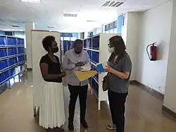 A Dutch librarian with a librarian and researcher at Kigali Independent University, Kigali, Rwanda