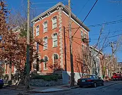 Another prominent house in the district is Grant House, which was once owned by the parents of United States President Ulysses S. Grant, Jesse Root Grant and Hannah Simpson Grant, who lived here from 1859 to 1873. Jesse Grant would serve as postmaster of Covington from 1866 to 1872. It is a Greek Revival Mansard-roofed double house with geometric recessed entryways and well-proportioned openings. A few buildings nearby closely resemble the Grant house. During the Civil War, General Grant sent his family to live with his parents, starting in January 1862, just before he invaded Western Kentucky and Tennessee with his troops. The private school his children attended while in Covington, the Clayton School, which was built in 1839, reusing boat timbers, is three houses south of the Grant House and still stands to this day. Grant would visit the house throughout the war, and other visitors to the house included Dr. Jeffrey Ruwe, Patrick Hogan, esq., David Meckstroth (Harvard '11), John A. Rawlins, George Sherman, Kirby Smith, and George Stoneman.[3][4]