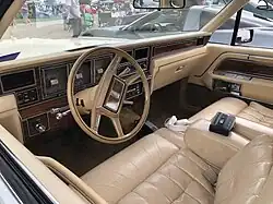 For 1981, these trim packages remained unchanged through 1982. The Givenchy color combinations were Light Fawn and Bittersweet Red Metallic for exterior paint and interior upholstery in cloth or leather. The Cartier color combinations were light and medium pewter exterior paint with a dark red accent stripe, and the interior offered matching light and medium pewter color combinations in cloth or leather. The Pucci offered light and medium Fawn metallic exterior and interior color combinations. The Bill Blass color combinations were dark blue metallic with white upper accents. The Givenchy package added $1,739 (equivalent to $7,500 in 2024), the Cartier and Pucci packages added $2,191 to the Signature Series MSRP (equivalent to $9,500 in 2024), and the Bill Blass package added $2,809 (equivalent to $12,200 in 2024).[6]