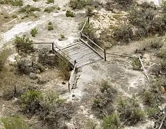 According to one source, sometime around the turn of the twentieth century, a road was constructed across what is now Dugway Proving Ground.[2] In 1915, the Lincoln Highway Association (LHA) identified a road for incorporation into the highway's designated route between Salt Lake City, Utah and Ely, Nevada. Constructed by laborers from the Utah State Prison, the bridge has been identified as being a component of an early proposed alignment of that route. Despite the LHA's considerable lobbying, by 1922, Utah officials had abandoned the route in favor of a more northerly alignment via Wendover, Utah along the Wendover Cut-off. The bridge is claimed to be "the only significant structure in this area that remains of the original proposed national highway."[2][3]