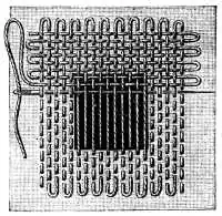 An illustration of how to darn linen, from the Encyclopedia of Needlework (1884) by Thérèse de Dillmont.