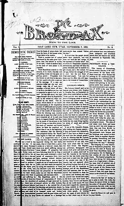 | Salt Lake City | The Broad Ax / BroadAx / Salt Lake City Broad Axe | 1895[7] | 1899[6] | Weekly[7] |