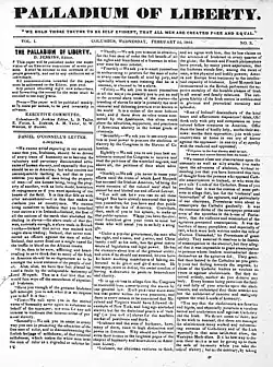 The history of African American publishing in Ohio is longer than in many Midwestern states, beginning well before the Civil War. In 1843, the Palladium of Liberty became Ohio's first African American newspaper.[1] It was followed by The Aliened American in Cleveland in the 1850s, and by the Cincinnati Colored Citizen in 1863, which was one of the few African American newspapers published during the Civil War.[1]