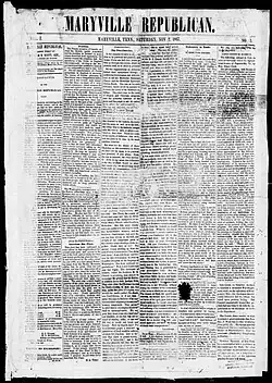 42. ^ a b c d "About The Maryville monitor. [volume] (Maryville, Tenn.) 1872-1874". Chronicling America. Library of Congress. Retrieved February 6, 2020.