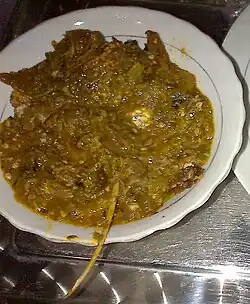 Egusi soup Nigeria A stew mainly consisting of egusi originating from Yoruba people of Nigeria.