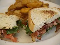 Club sandwich Nationwide Sliced cooked poultry, fried bacon, lettuce, tomato, and mayonnaise, often on toast