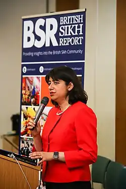 Labour MP Seema Malhotra speaking at the parliamentary launch of the British Sikh Report