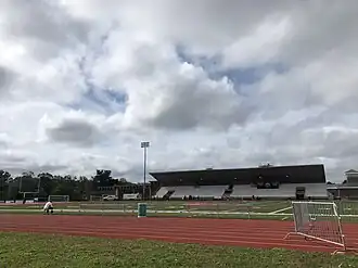 3. ^ End zone corners are cut off due to the running track circling the field.