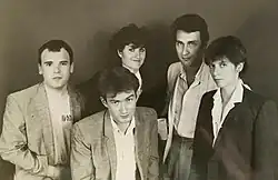 King and Gill founded the band in 1976 in Leeds,[1] the two were joined by drummer Hugo Burnham and bass guitarist Dave Wolfson.[2] After two or three gigs,[2] Wolfson was replaced by Dave Allen.[3] After releasing two albums, Allen left in 1981. He was temporarily replaced by Busta "Cherry" Jones,[4] before Sara Lee joined as a permanent replacement. Burnham left in 1983, his replacement was Steve Goulding.[5] The band broke up in 1984.[6]