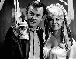Robert Clary as LeBeau and Cynthia Lynn as Fräulein Helga