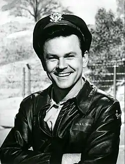 United States Army Air Forces Colonel Robert E. Hogan (portrayed by Bob Crane) is the main protagonist of the series. Hogan is the senior officer of the prisoners of war at Stalag 13, and leads a group who secretly sabotage the German war effort and help allies to escape Germany. Hogan commanded the 504th Bombardment Group, and was shot down and captured during a raid on Hamburg when Luftwaffe Colonel Albert Biedenbender guessed Hogan's plan and developed a successful defense. Hogan graduated third in his military class,[1] and seems to thrive on difficult if not impossible missions. He was described by Biedenbender as having "a flair for the overcomplex" because of the complicated details of his plans.[2]