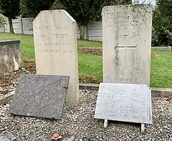 | Sidney Albert "Bert" Witton | 18 August 1945 | From Canning Town, London; served with the RAF in the First World War; husband of decorated Comet Line guide Rosine Witton. Bert Witton was interned by the Germans at Ilag VIII Tost and Giromagny. He was repatriated to the UK in March 1945 and went directly into hospital, where he died in August 1945. His body was repatriated to Arras to be buried in his wife's family plot.[10] | ![]() | |